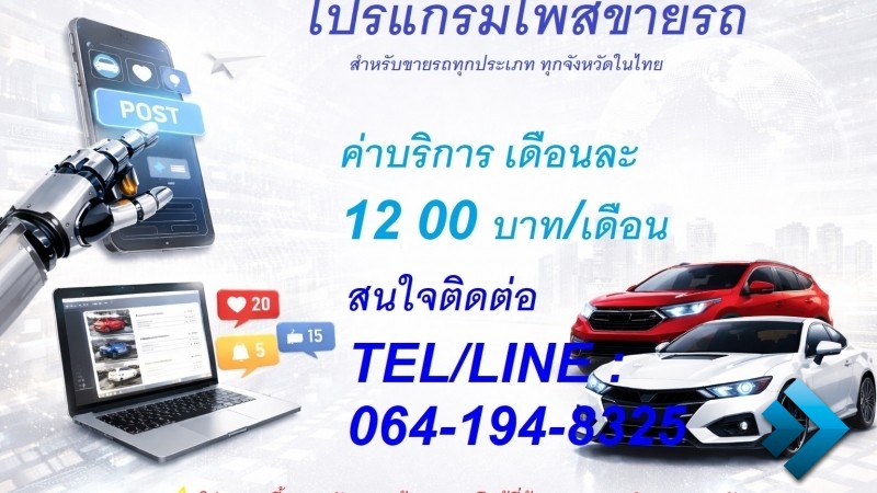 ขาย โปรแกรมโพสต์ขายรถอัตโนมัติ ลงประกาศได้กว่า 50 เว็บไซต์ ใช้งานง่าย ประหยัดเวลา เพิ่มโอกาสเข้าถึงลูกค้าและปิดการขายได้เร็วขึ้น